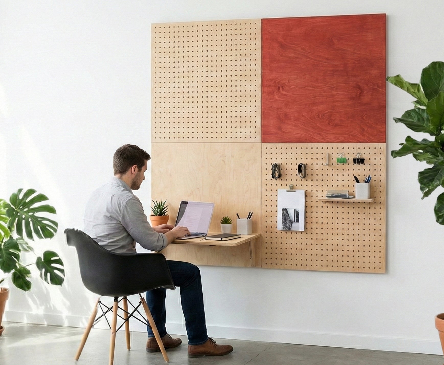 Discover the Aire pegboard: a modular perforated panel that fits perfectly in any room. Need a change? Rearrange it in moments. Durable and robust, our pegboards are built to last.