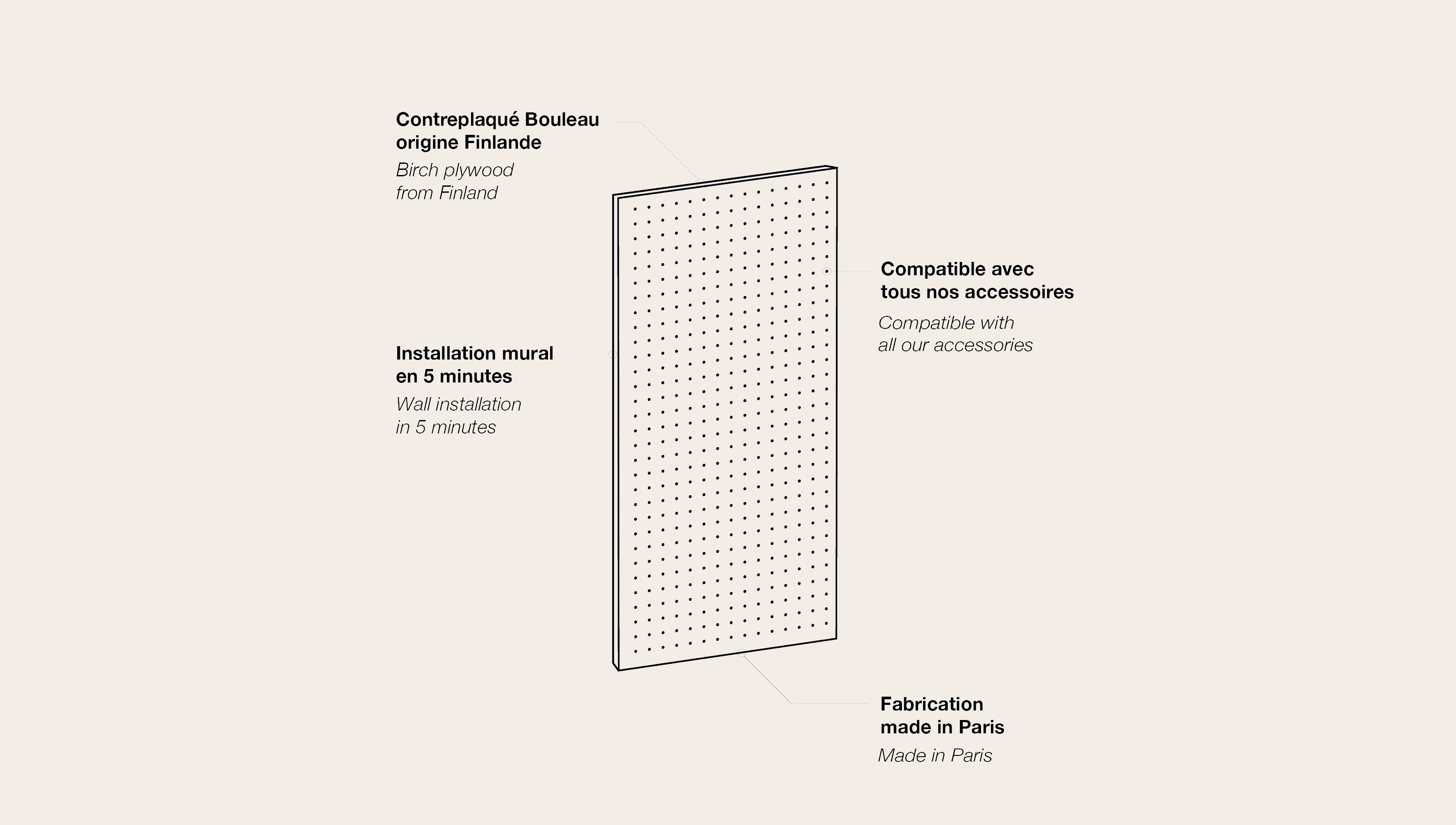 Pegboard is both a practical and aesthetic solution. Aire transforms your walls into truly functional surfaces.